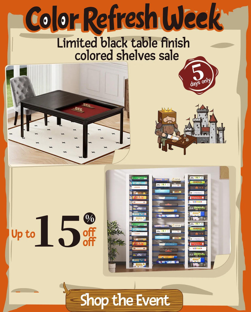 Explore our board game storage shelves,game tables, for your game boxes, and all the accessories you need β perfect for 2-10 players in epic battles, and showcasing your collection.
