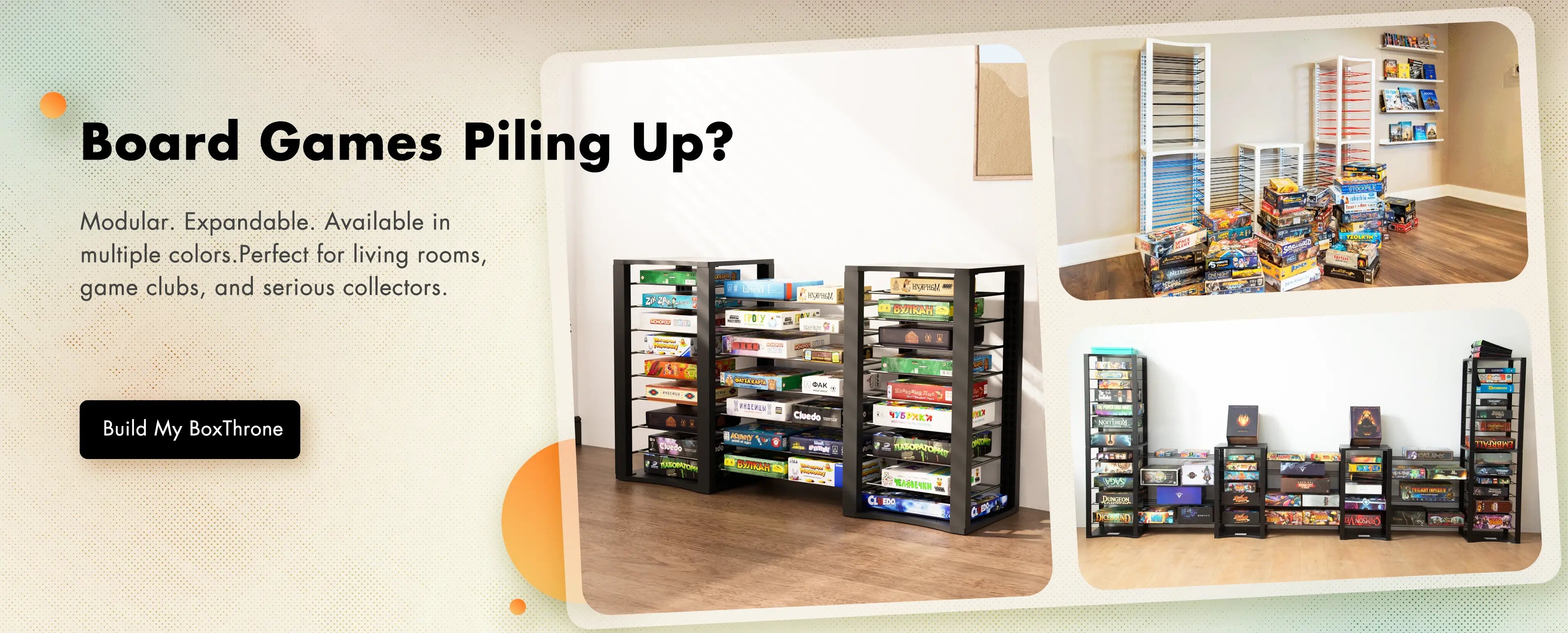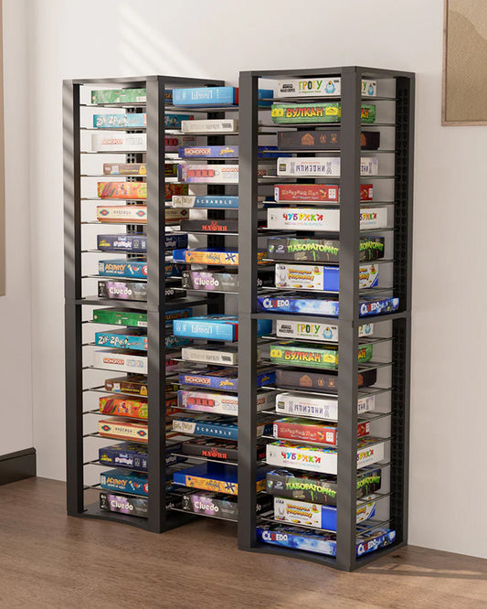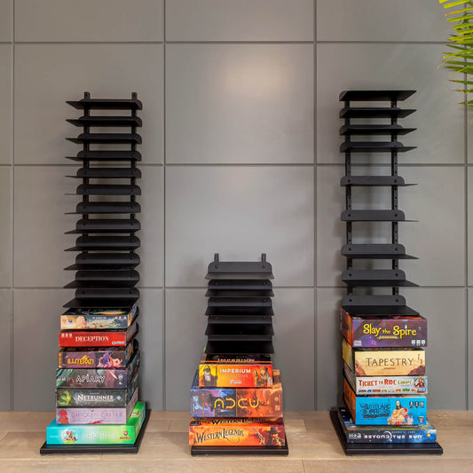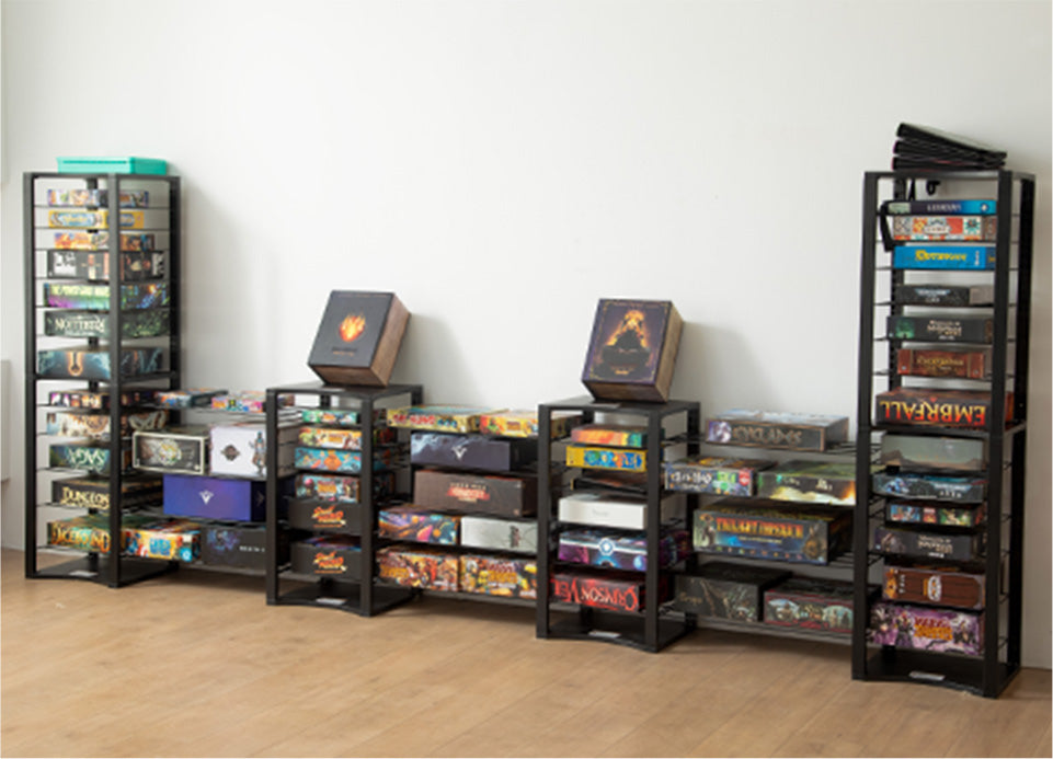 Modular shelving for board games, offering dedicated, expandable storage that beautifully displays and protects each game.