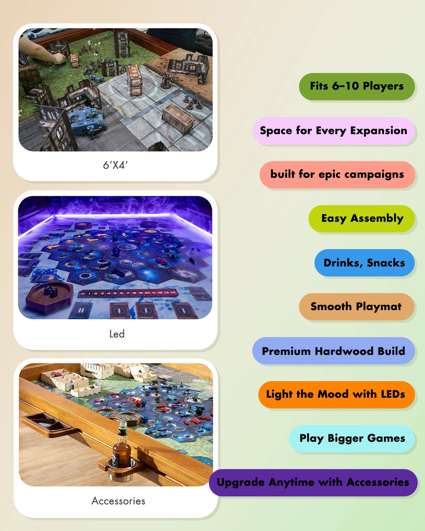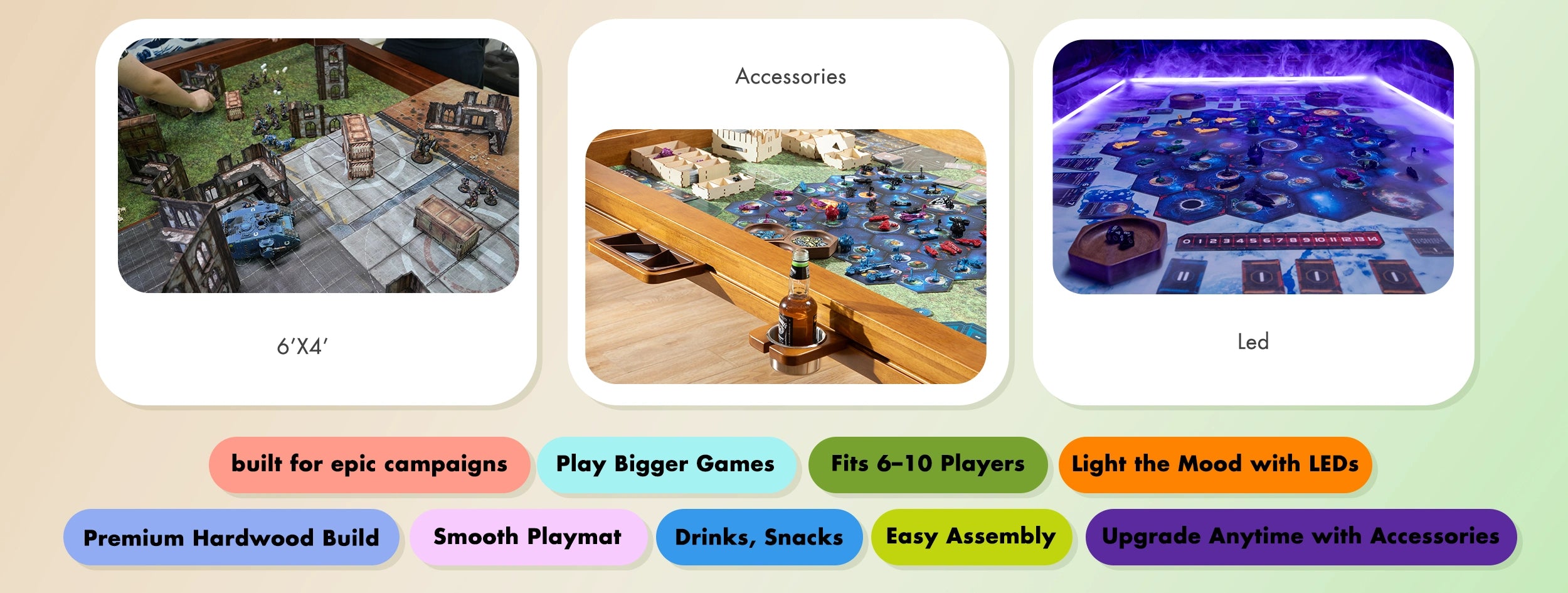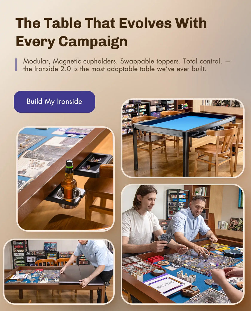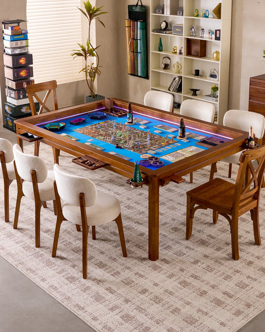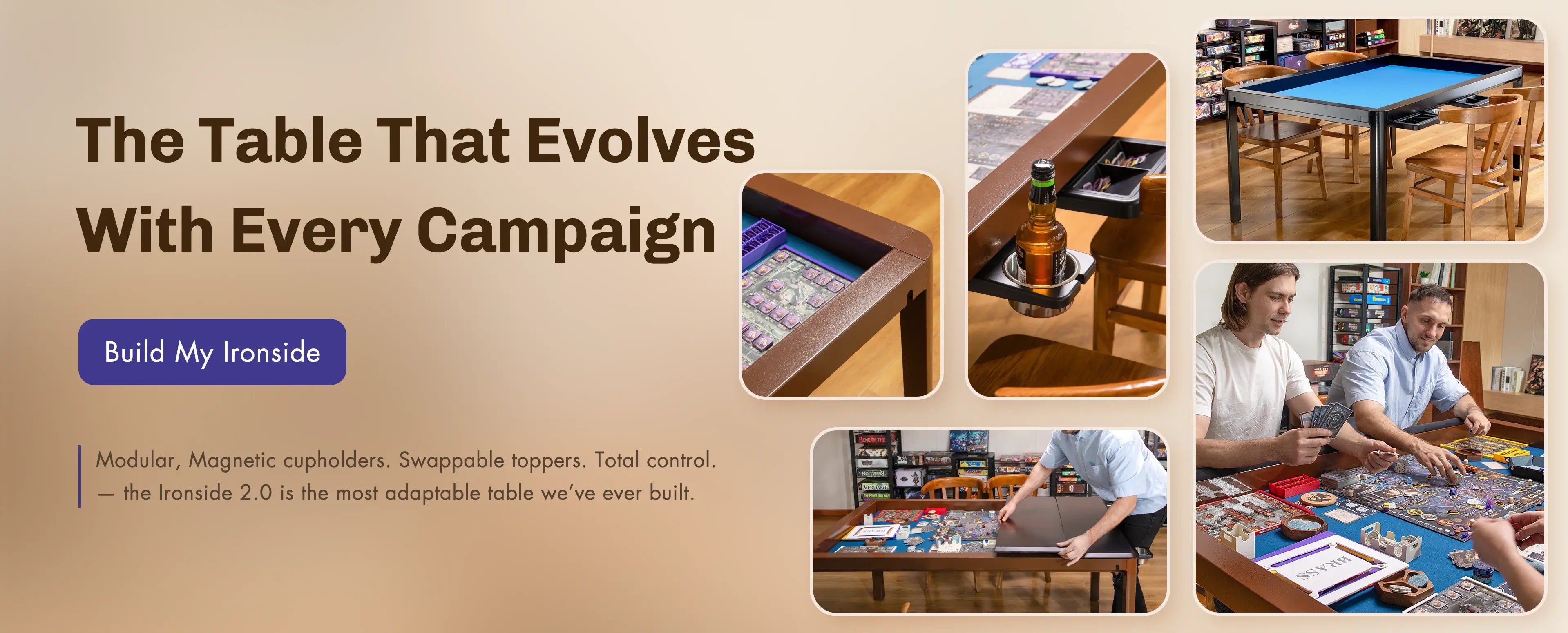 From modular RPG-ready designs to timeless wood-and-steel classics — explore our full collection of board game tables, built for every style of play.