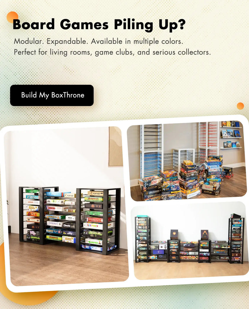 Explore our board game storage shelves,game tables, for your game boxes, and all the accessories you need – perfect for 2-10 players in epic battles, and showcasing your collection.