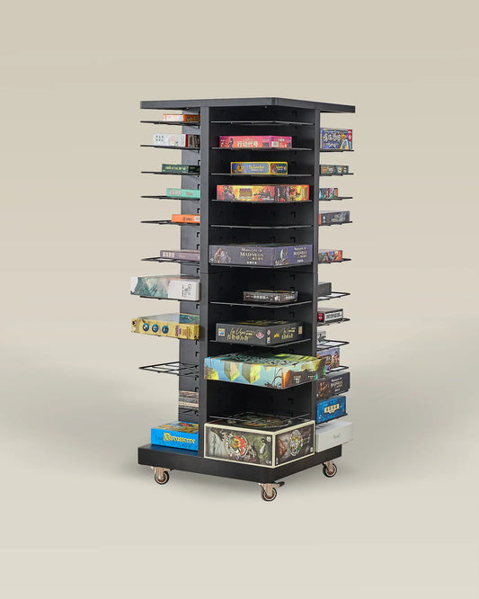 A full board game shelving system designed for serious collectors. Modular, expandable, and built to organize your entire game library with style.