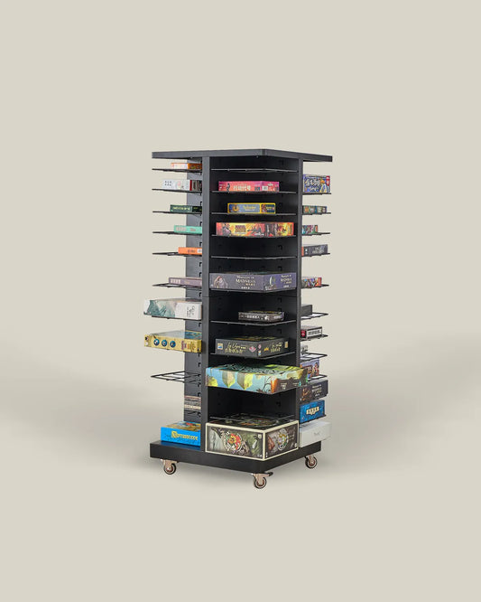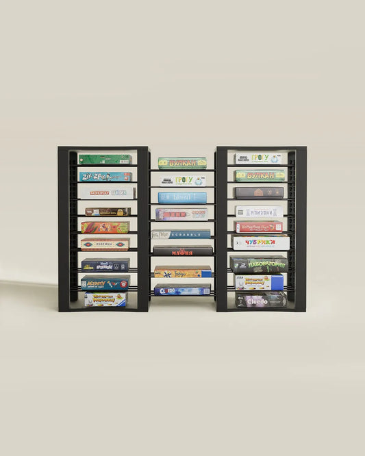 A full board game shelving system designed for serious collectors. Modular, expandable, and built to organize your entire game library with style.