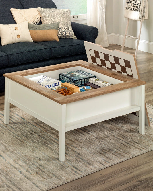 Square Coffee Table with Reversible Chess Game Surface & Hidden Storage