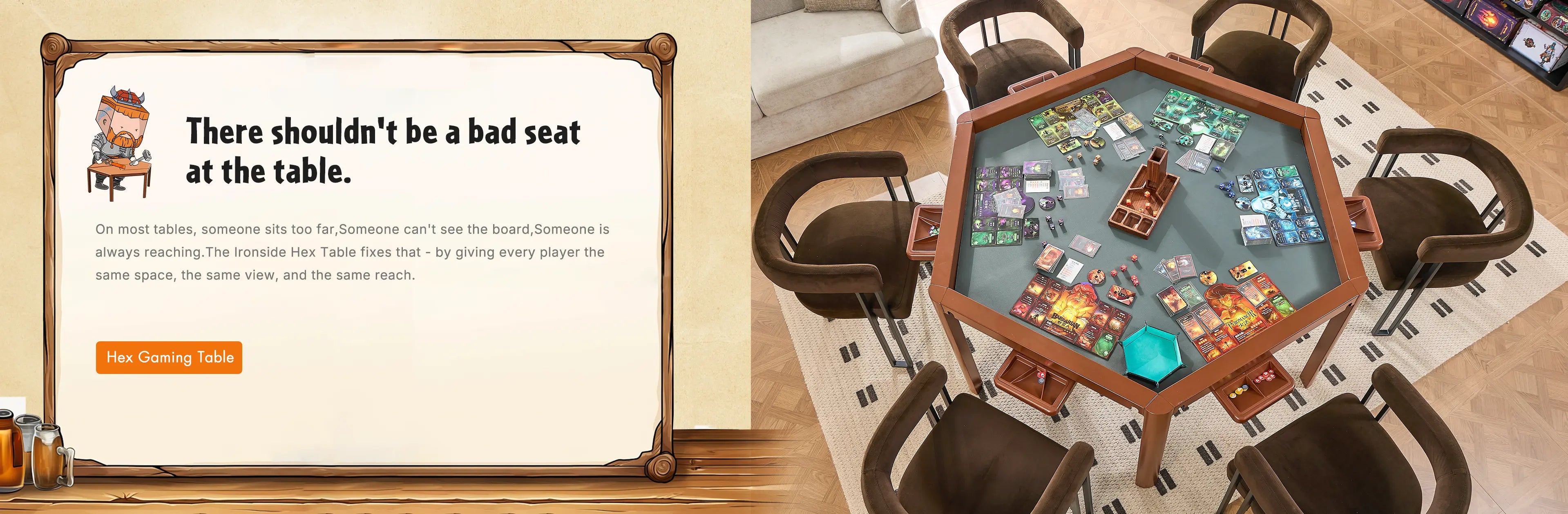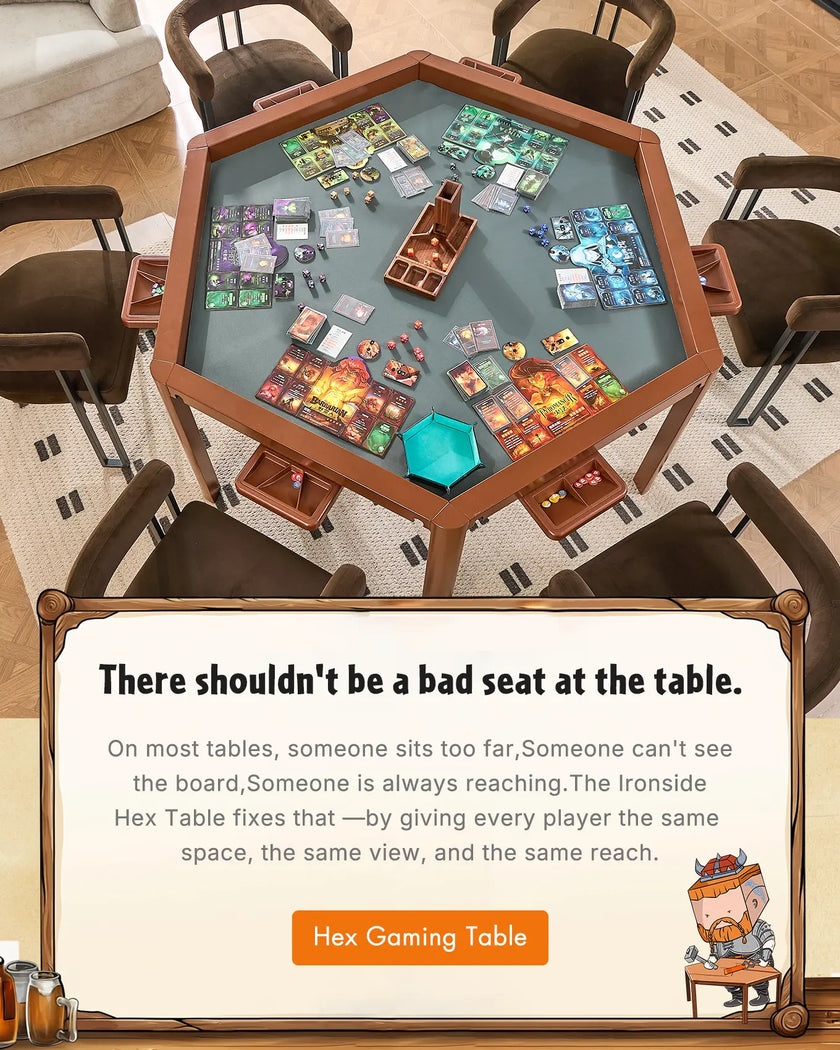 Every player gets equal reach, a clearer view, and their own space to play. The hex design keeps the table balanced, comfortable, and easy for everyone to use.