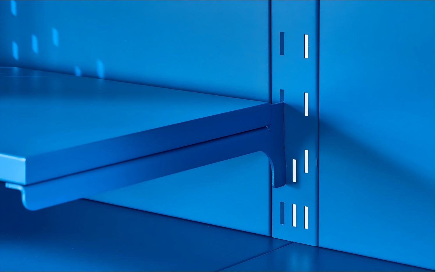 Made from powder-coated steel with sturdy support brackets for reliable, long-term storage.