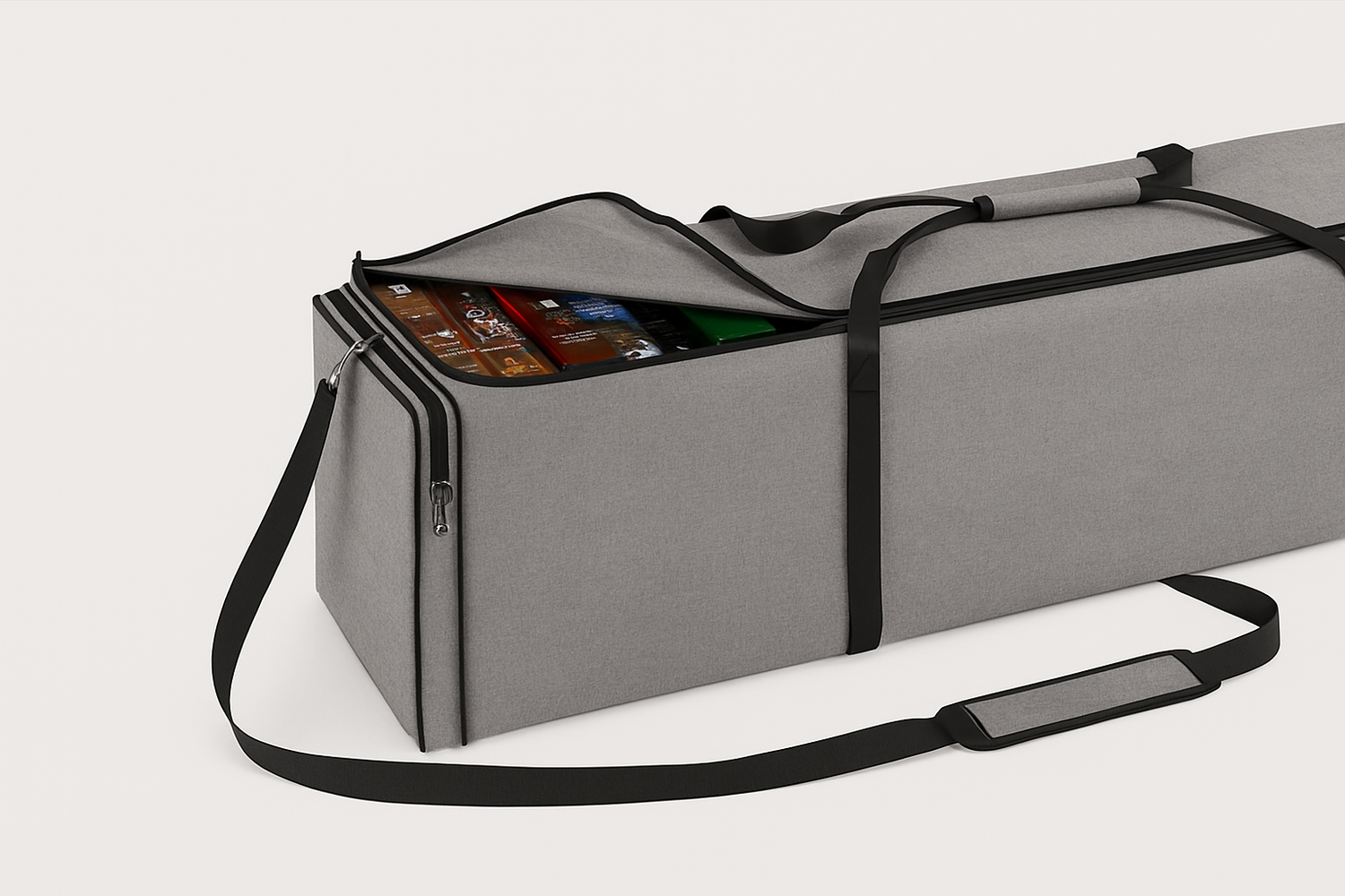Designed for two-person carrying with reinforced handles on each end – perfect for conventions or game nights elsewhere.