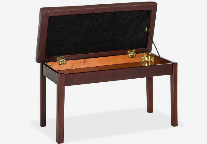 Featuring a tufted faux leather seat and clean, traditional lines, this bench adds a touch of elegance to your board game or hobby space.