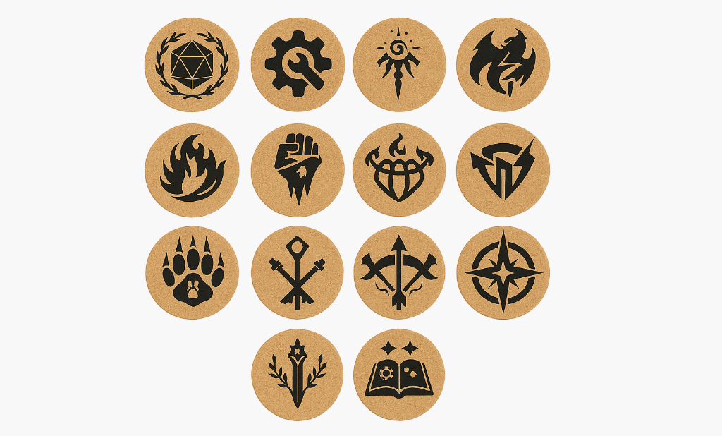 Includes 12 character coasters and 1 DM coaster, with no restriction on profession name, suitable for any character setting.