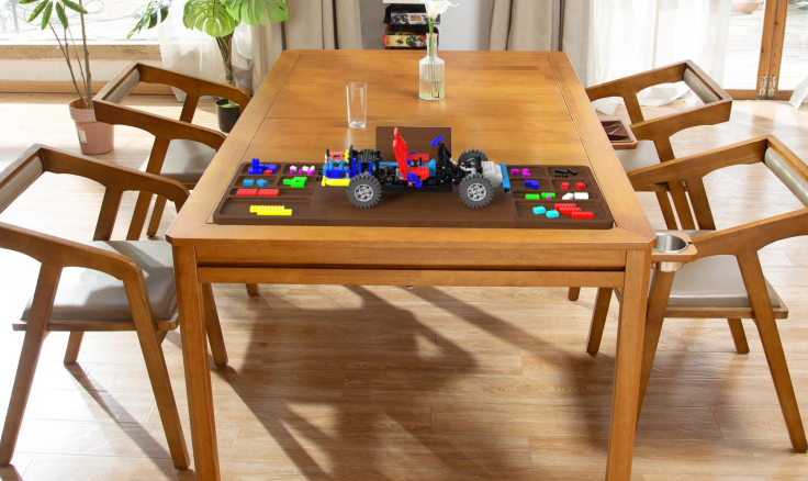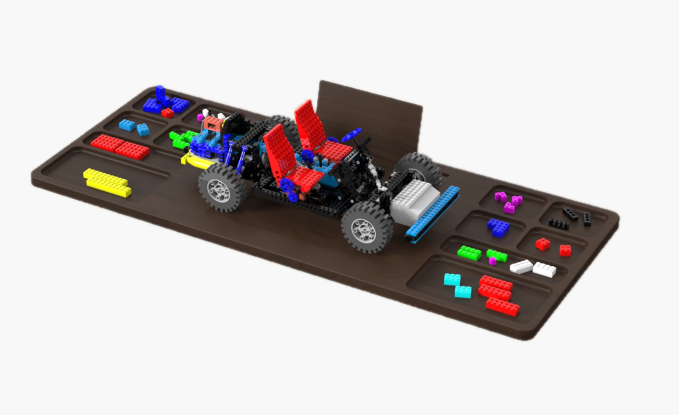 Designed to sit perfectly on Kingswood wooden tables. The front side provides a smooth tabletop surface, and the back side includes deep, organized groove compartments ideal for sorting LEGO bricks or puzzle pieces.