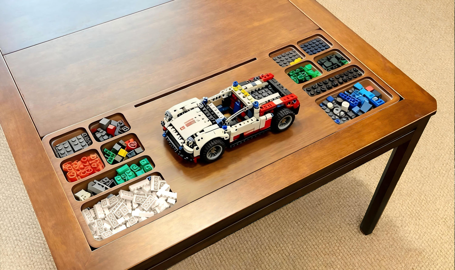 Dual-Sided Design: Tabletop Surface + LEGO Sorting Grooves