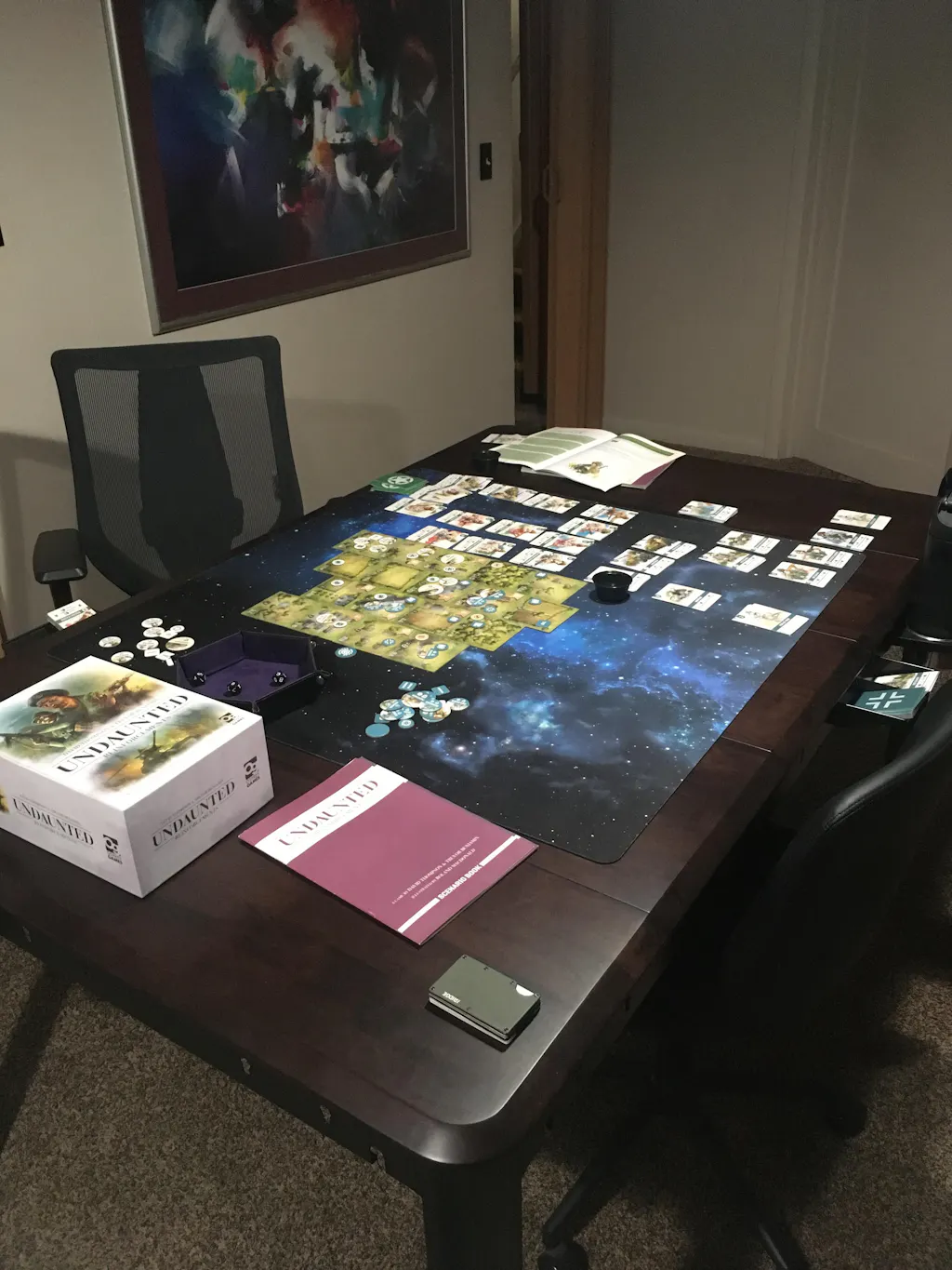 Choose between halved middle toppers (creates two mini-tables for game setup) or full panel version (converts to longer benches) - includes 4 protective coasters for playmat use.